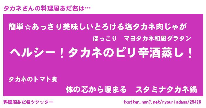 | 意味不明あだ名 | 『自称タカネ』『永久保存タカネ』 |