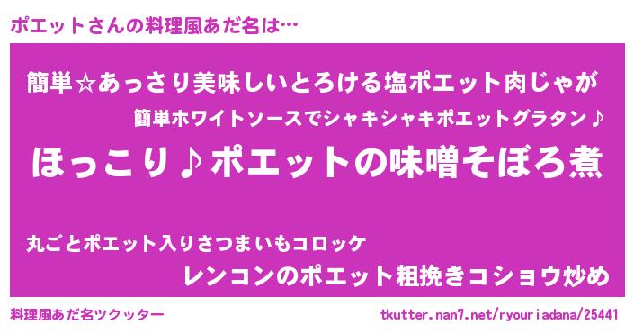 | 男性向けラノベタイトル風あだ名 | 『ポエットの憂鬱』『魔弾の王とポエット』 |