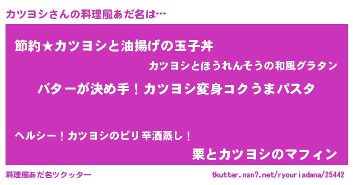 | 女子向けラノベタイトル風あだ名 | 『カツヨシ恋絵巻』『闇のカツヨシ』 |