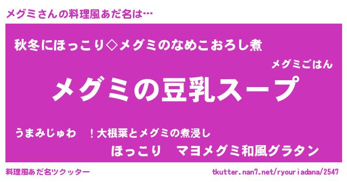 | ポケモン風あだ名 | 『ヒメグミ』『メグゴンZ』『メーグイ』 |