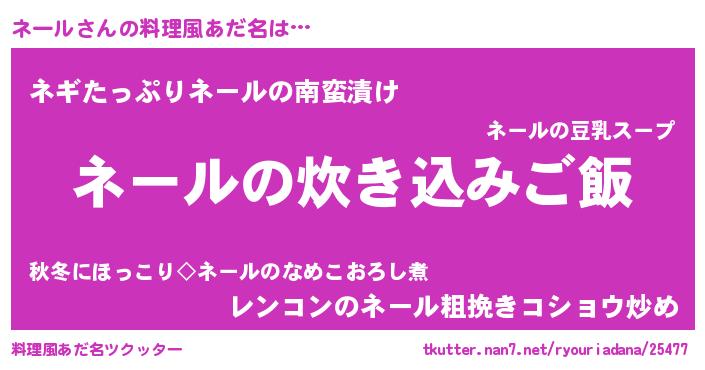 | 男性向けラノベタイトル風あだ名 | 『うちのネールが世界を掌握している!』 |