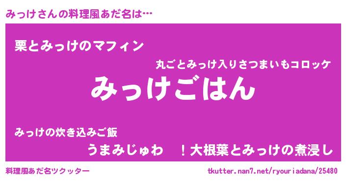 | 意味不明あだ名 | 『なめこ科みっけ属』『ペロリンみっけ』 |