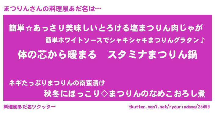 | ヘコむあだ名 | 『牛乳』『まつりん(笑)』『まつっ子』 |