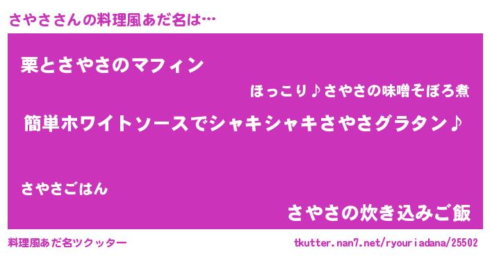 | 男性向けラノベタイトル風あだ名 | 『さやさの嫁は女の子じゃないと思った?』 |