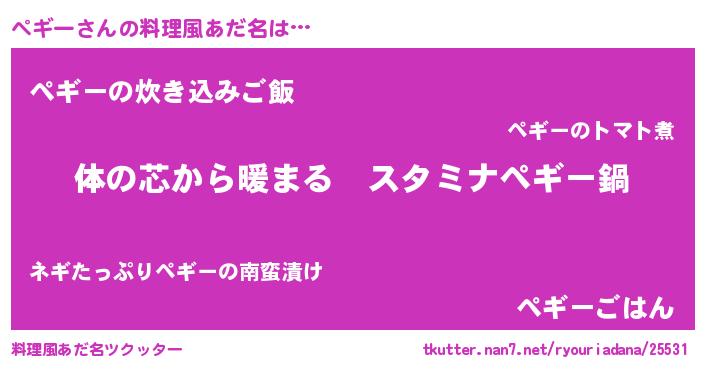 | ヘコむあだ名 | 『牛乳』『ペギもー』『ペギを』 |