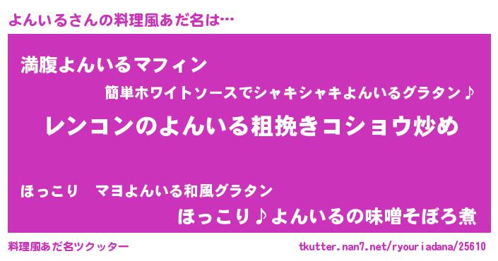 | 意味不明あだ名 | 『自称よんいる』『永久保存よんいる』 |