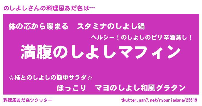 | 胡散臭い通販商品みたいなあだ名 | 『絶対に幸福をもたらす健康食品…その名も「のしよし」』 |
