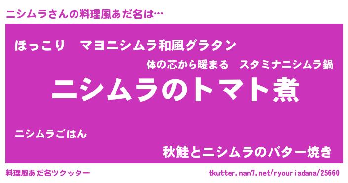 | 男性向けラノベタイトル風あだ名 | 『おまえをオタクにしてやるから、俺をニシムラにしてくれ! 』 |
