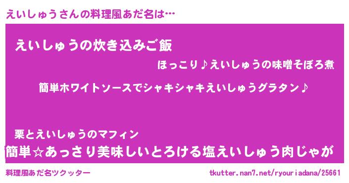 | 女子向けラノベタイトル風あだ名 | 『えいしゅう様がみてる』 |