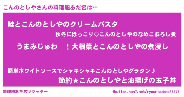 | 女子向けラノベタイトル風あだ名 | 『こんのとしやの婚約者』 |