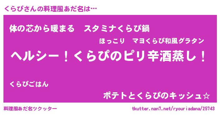| ヘコむあだ名 | 『酢こんぶ』『くらを』『くらにゅー』 |