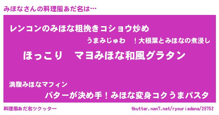 | ヘコむあだ名 | 『レバニラ』『みほな(笑)』 |