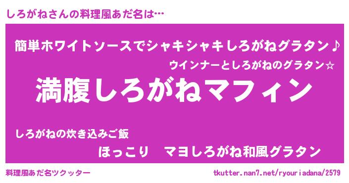 | ヘコむあだ名 | 『しろがね(笑)』『しろ太郎』 |