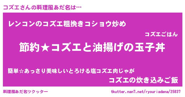 | ヘコむあだ名 | 『コズにー』『コズエ(笑)』『コズを』 |