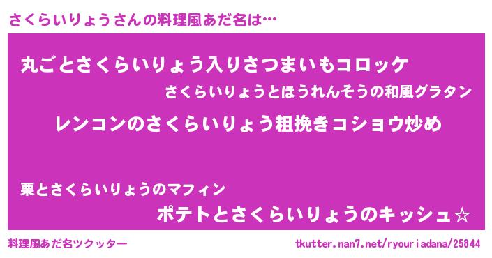 | 意味不明あだ名 | 『自称さくらいりょう』 |
