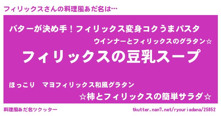 | 男性向けラノベタイトル風あだ名 | 『ダンジョンにフィリックスを求めるのは間違っているだろうか』 |