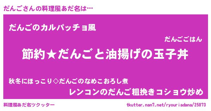 | 男性向けラノベタイトル風あだ名 | 『だんごの憂鬱』『魔弾の王とだんご』 |