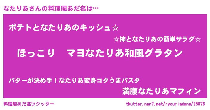 | 意味不明あだ名 | 『住所不定無職なたりあ(9歳)』 |