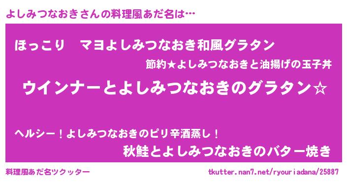 | ヘコむあだ名 | 『豆乳』『よしみつなおき(笑)』 |