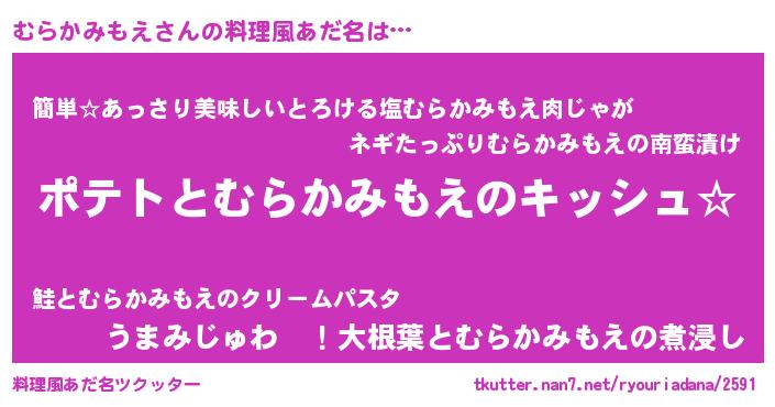 | 男性向けラノベタイトル風あだ名 | 『むらかみもえの嫁は女の子じゃないと思った?』 |