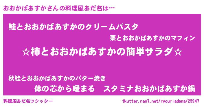 | 欧米人風あだ名 | 『おおかばあすか・ステッグマイヤー』 |