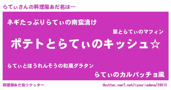 | 胡散臭い通販商品みたいなあだ名 | 『伝統あるサプリメント…その名も「らてぃ」』 |