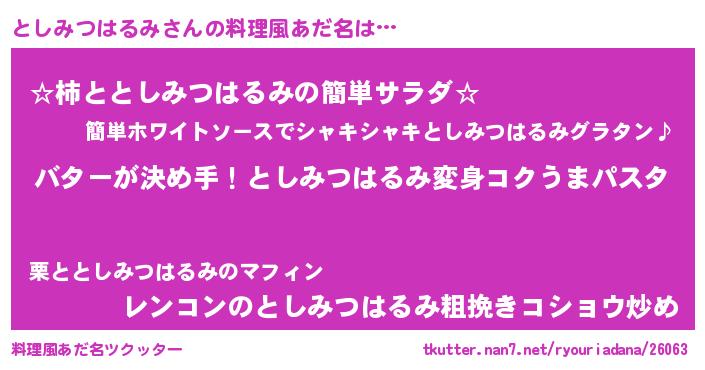 | 肩書あだ名 | 『としみつはるみ助手』 |