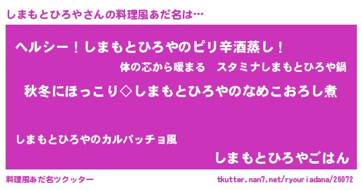 | 男性向けラノベタイトル風あだ名 | 『しまもとひろやに滅ぼされるだけの簡単なお仕事です』 |