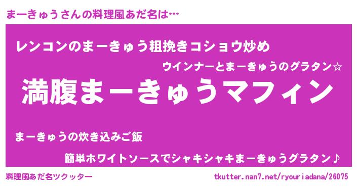 | 胡散臭い通販商品みたいなあだ名 | 『絶対に幸福をもたらす健康食品…その名も「まーきゅう」』 |