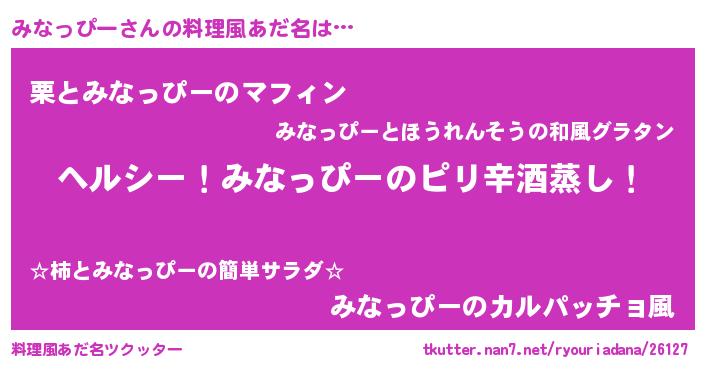 | 男性向けラノベタイトル風あだ名 | 『Re:みなっぴーから始める異世界生活』 |
