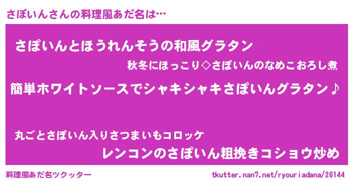 | 女子向けラノベタイトル風あだ名 | 『さぽいん様がみてる』 |