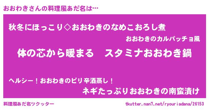 | 男性向けラノベタイトル風あだ名 | 『やはりおおわきの青春ラブコメはまちがっている 』 |