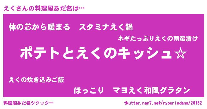 | 女子向けラノベタイトル風あだ名 | 『えくの卵を拾いまして』 |