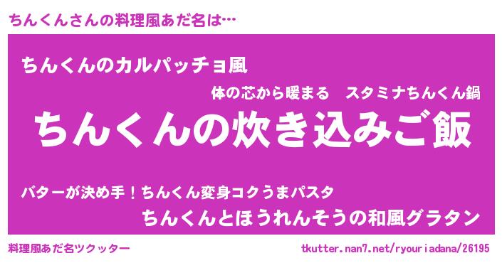 | 意味不明あだ名 | 『住所不定無職ちんくん(50歳)』 |