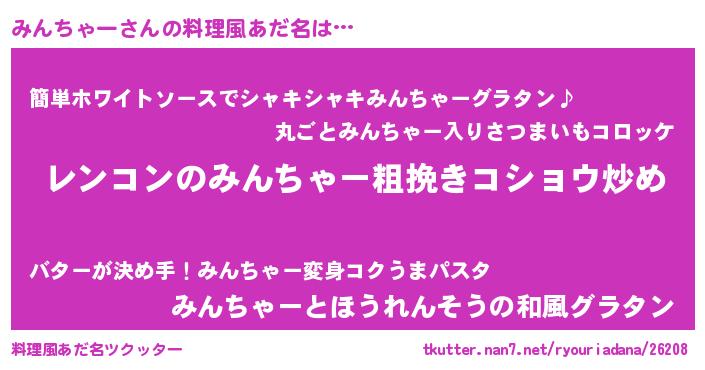 | ヘコむあだ名 | 『みん太郎』『みんちゃー(遠い目)』 |