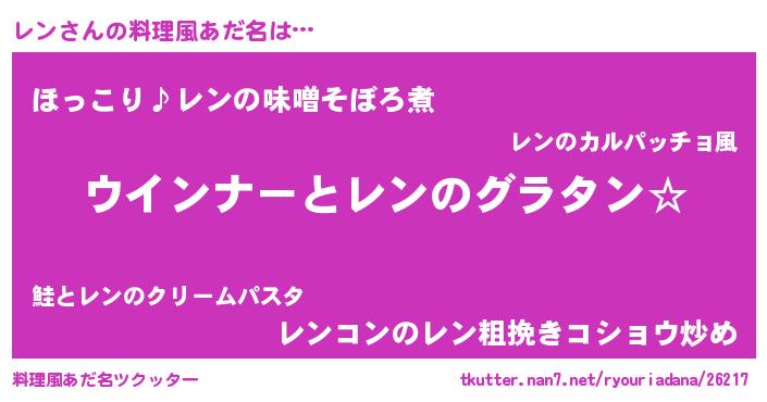 ヘコむあだ名 | 『なまこ酢』『レンにー』『レン(笑)』 |