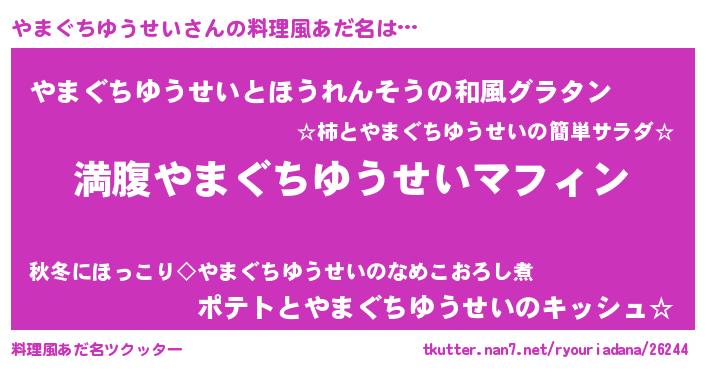 | ヘコむあだ名 | 『やまぐちゆうせい(苦笑)』『やまぷりん』 |