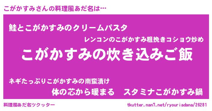 | ヘコむあだ名 | 『なまこ酢』『こがにゅー』 |