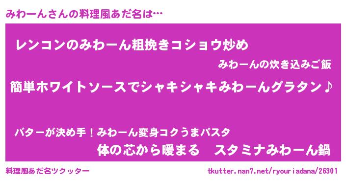 | 女子向けラノベタイトル風あだ名 | 『みわーん様がみてる』『みわーん恋絵巻』 |
