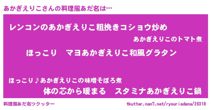 | 意味不明あだ名 | 『住所不定無職あかぎえりこ(13歳)』 |