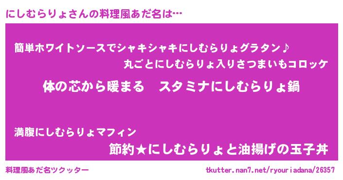 | 意味不明あだ名 | 『にしむらりょフォーエバー』 |