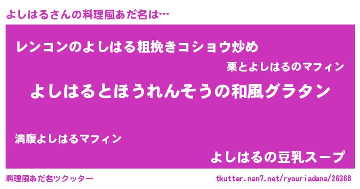 | 意味不明あだ名 | 『つくし科よしはる属』『自称よしはる』 |