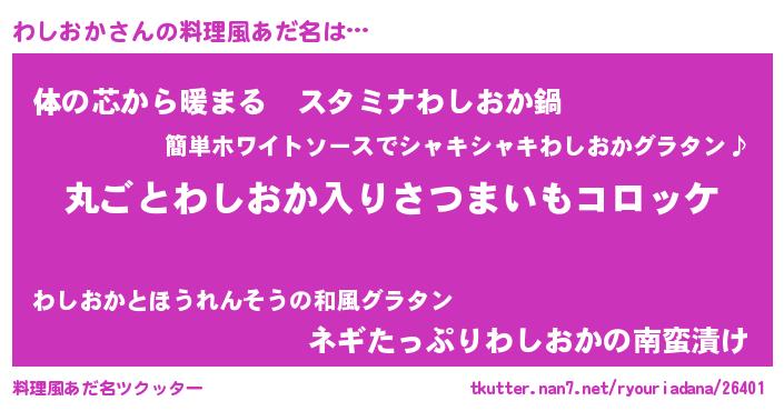 | 意味不明あだ名 | 『住所不定無職わしおか(4歳)』 |