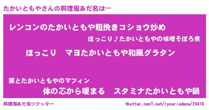| 男性向けラノベタイトル風あだ名 | 『この素晴らしい世界にたかいともやを!』 |