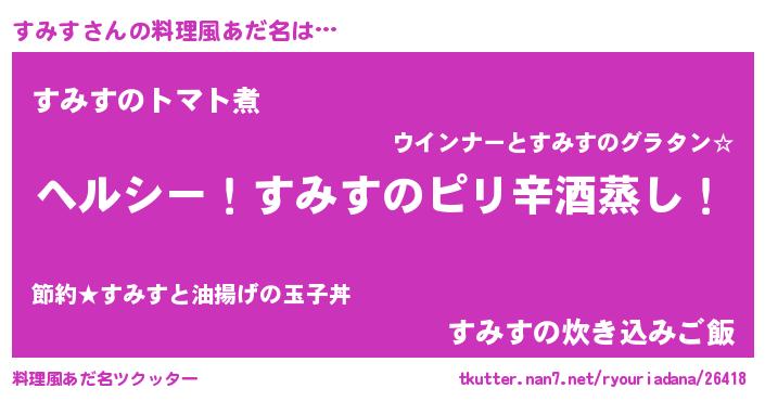 | 女子向けラノベタイトル風あだ名 | 『闇のすみす』『すみす夫妻のなれそめ』 |
