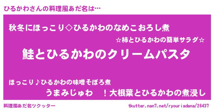 | 男性向けラノベタイトル風あだ名 | 『ノーゲーム・ノーヒルカワ』 |