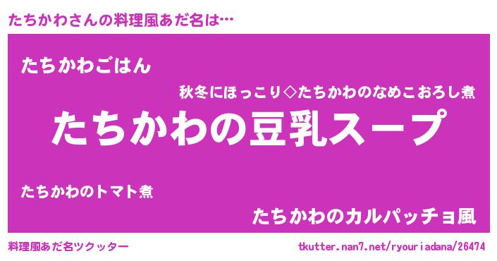 | 胡散臭い通販商品みたいなあだ名 | 『信頼と実績のサプリメント…その名も「たちかわ」』 |