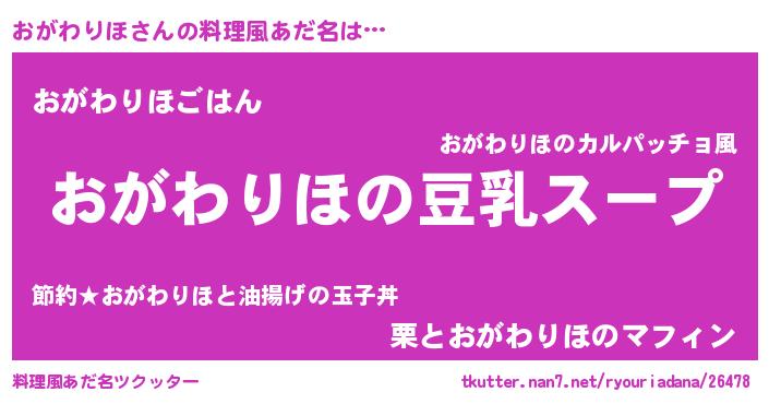 | 女子向けラノベタイトル風あだ名 | 『おがわりほは平凡を望む』 |
