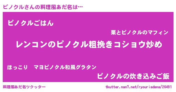 | 意味不明あだ名 | 『自称ピノクル』『なめこ科ピノクル属』 |