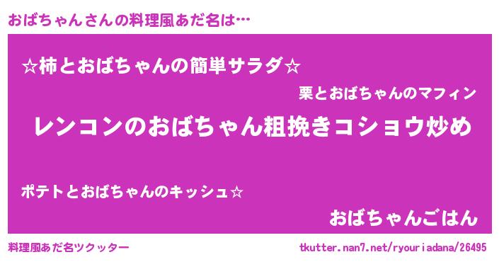 | 女子向けラノベタイトル風あだ名 | 『おばちゃんなんてお断りですっ。』 |